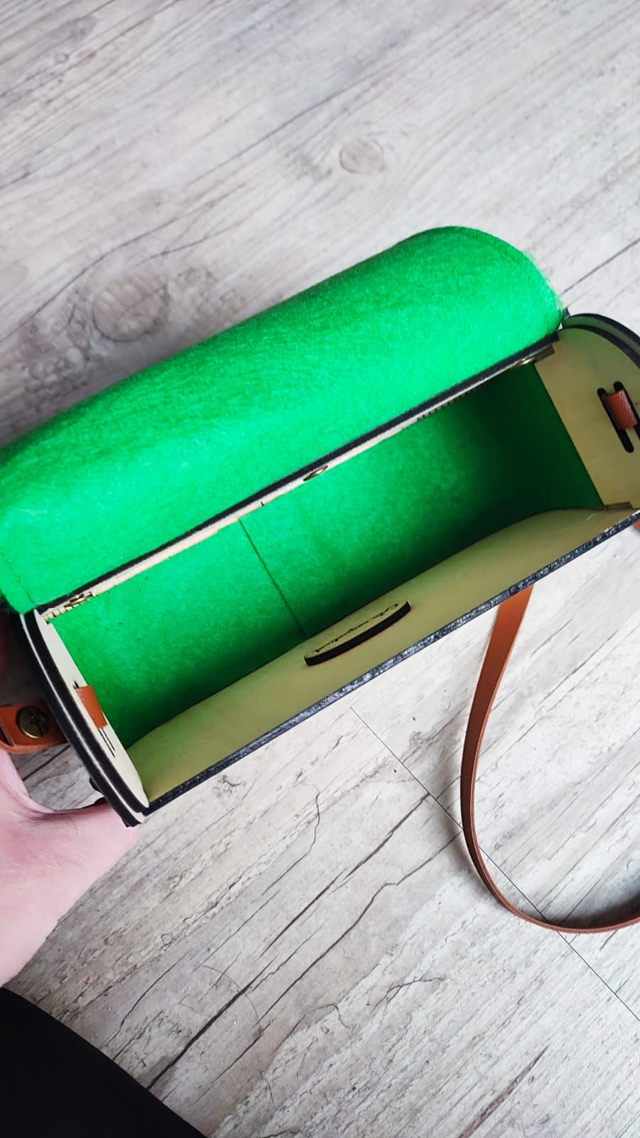 Découvrez notre sac à main en bois et en feutrine verte, sublimé par de délicates gravures de feuilles de ginkgo biloba. Je le fabrique au cœur du Limousin de manière artisanale. Ce sac allie élégance et respect de l'environnement grâce à son bois de tilleul écoresponsable et sa feutrine douce.