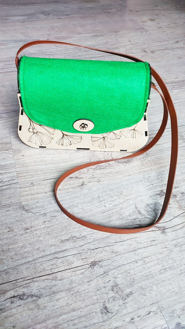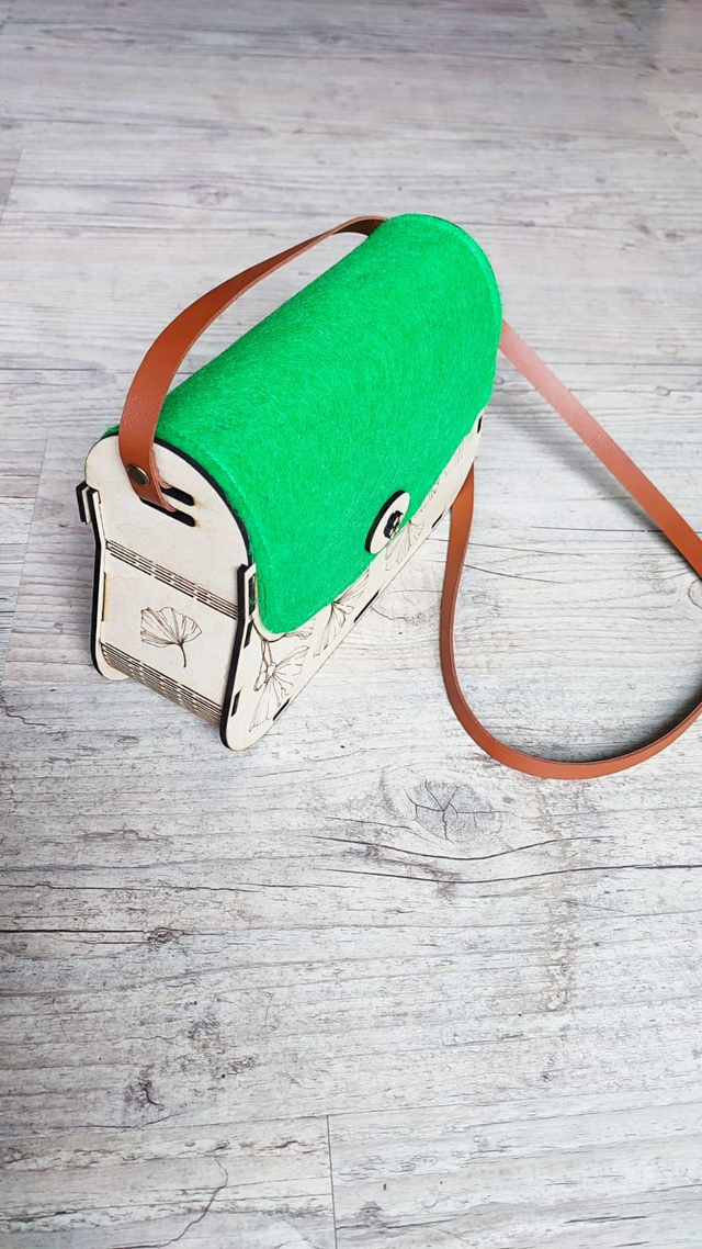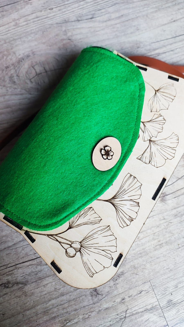 Sac à main bois et feutre vert Feuille de GINGKO Biloba