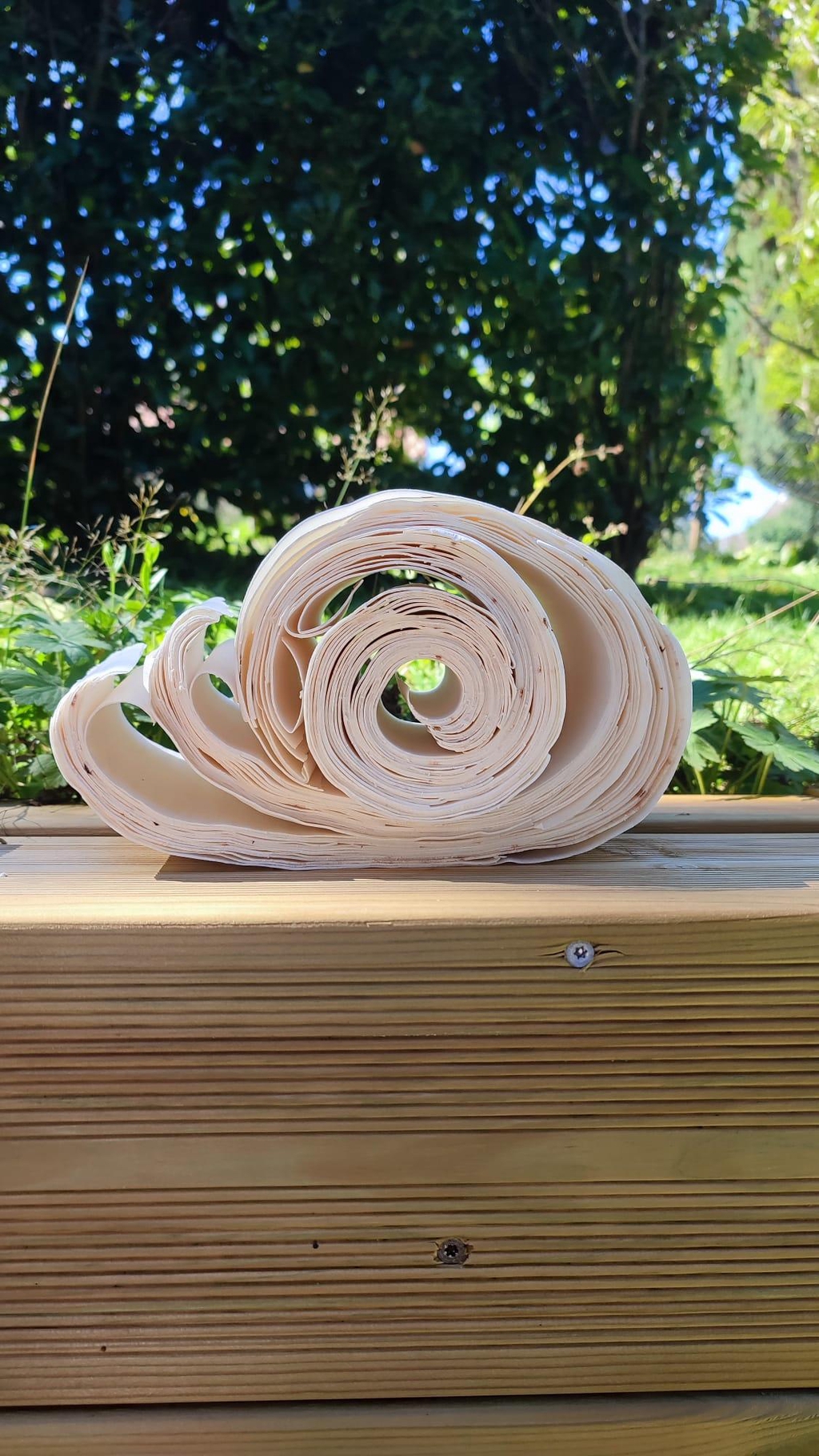 On obtient un rouleau de feuilles de bois de 1 mm d' épaisseur maximum.